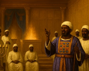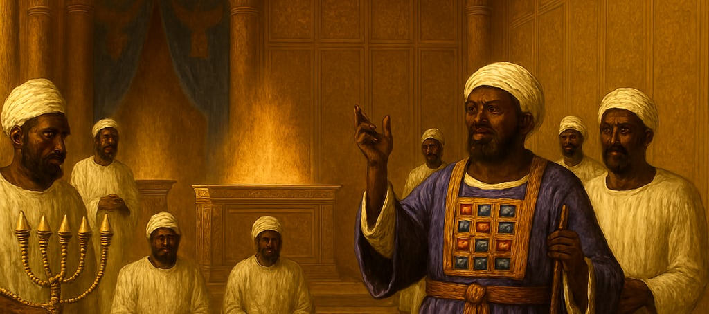 Identidade Hebraica Negra Honrada: Os profetas não são fantasias europeias — são homens e mulheres hebreus negros, de pele selada pelo sol, de traços preservados na rocha e no rolo. Reis, emissários e sacerdotes são restaurados em sua glória ancestral, como oliveiras que voltam a florescer.