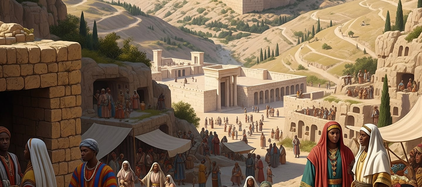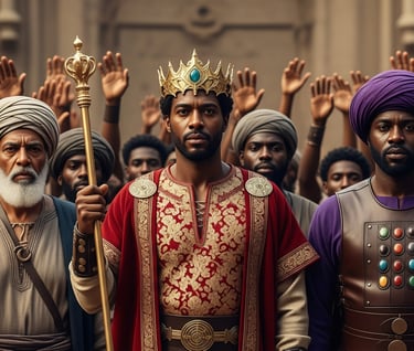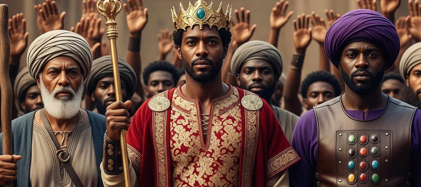 Os profetas não são fantasias europeias — são homens e mulheres hebreus negros, de pele selada pelo sol, de traços preservados na rocha e no rolo. Reis, emissários e sacerdotes são restaurados em sua glória ancestral, como oliveiras que voltam a florescer.